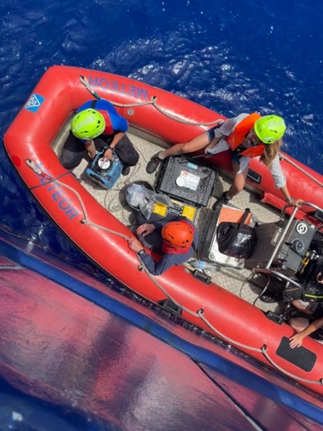 Nachmittags ging es weiter mit CTDs und einem zweiten Set an Kanisterproben von Halobates. Ist das Schlauchboot wieder an Deck, ist die „Halobates-Watch“ an Bord des Schiffes dafür verantwortlich, dass er nicht verloren geht.