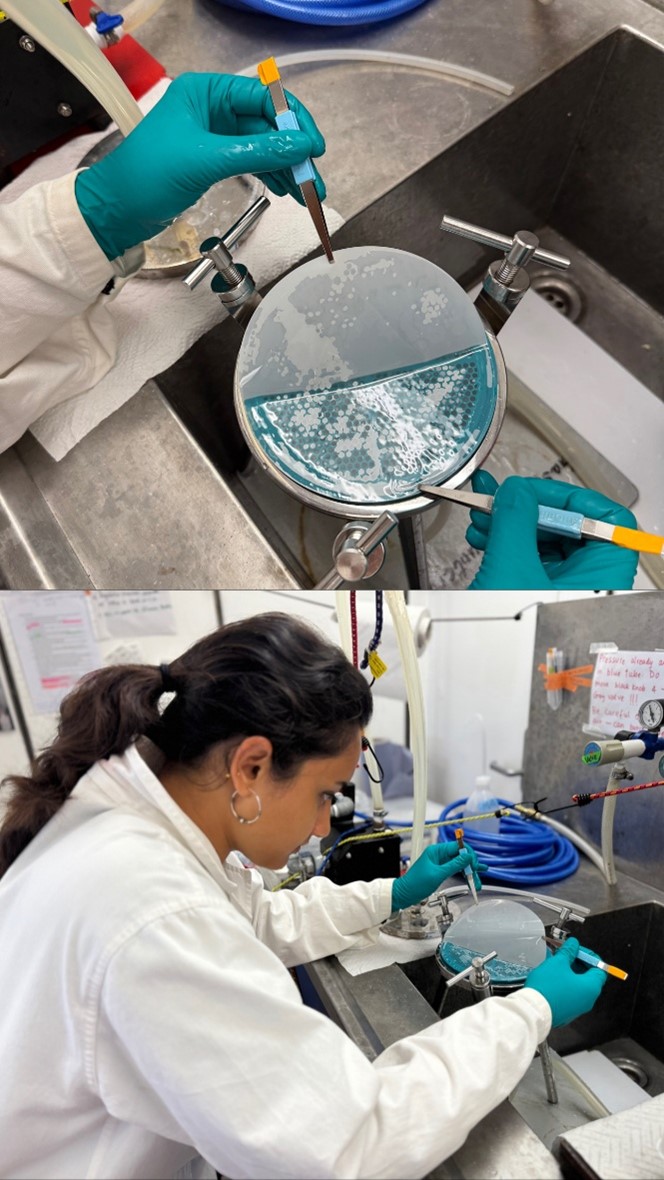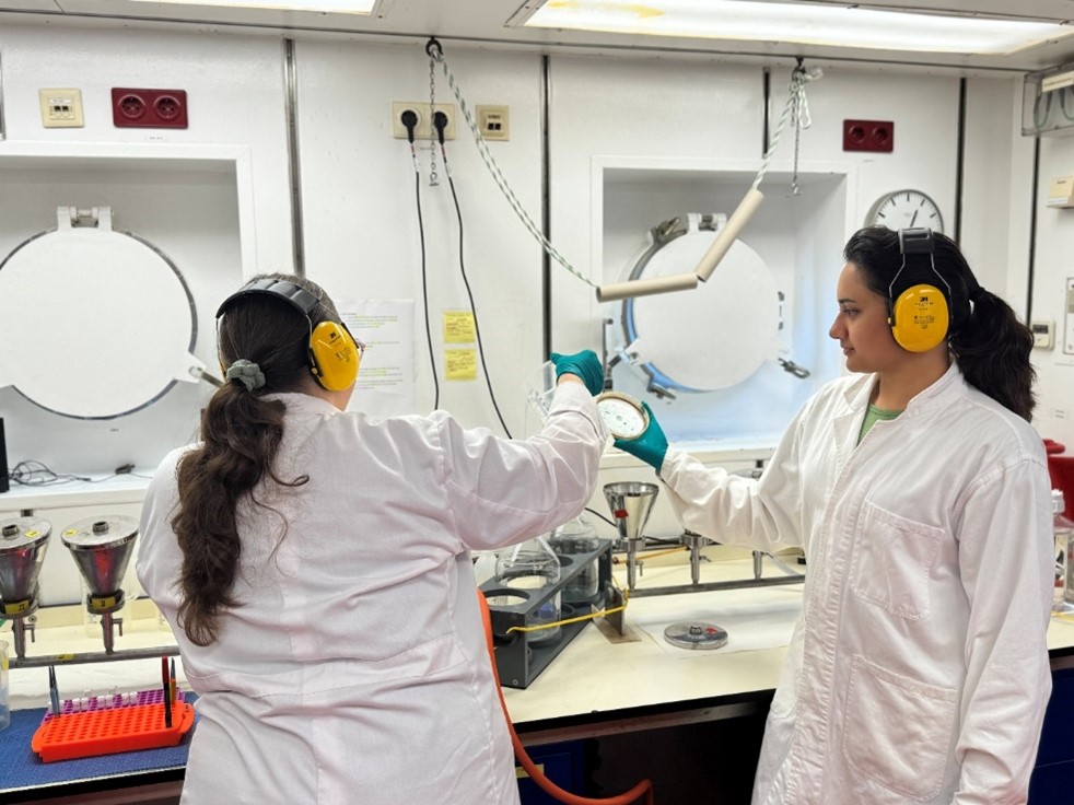 Both of us are international students who left our home countries to pursue careers in science, specifically in microbial ecology, at the Carl von Ossietzky University of Oldenburg. We never dreamt that we would be conducting fieldwork for our PhDs in the middle of the Atlantic Ocean! Now that we’re here, we’d like to give you a glimpse into what we are doing on board and why.