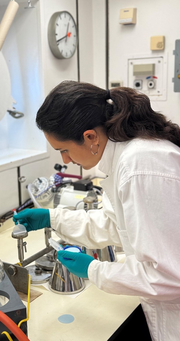 Image: Isha placing filters on the different filtration devices. // Isha beim Platzieren von Filtern auf den verschiedenen Filtergeräten.
